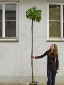 Bild 4: durchschnittliche LieferqualitĂ€t nach fachgerechtem RĂŒckschnitt fĂŒr eine guten Kronenentwicklung nach der Verpflanzung. Der Umfang der Belaubung hĂ€ngt vom Lieferzeitpunkt ab.