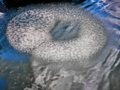 Das Geheimnis perfekter Sauerstoffzufuhr in Fischgewässern oder auch Schwimmteichen? Fein perlend muss der Sauerstoff einströmen. Kleine Luftblasen steigen im Teich langsamer auf als große und bewirken so einen intensiveren Übertritt von Luftsauerstoff ins Teichwasser. Was aber nun für diesen Job am besten wählen: Belüfterring oder Belüfterstab? So entscheiden Sie passend für Ihr Gartengewässer: Verwenden Sie einen AquaOxy Belüfterring dort, wo Sie den größtmöglichen Sauerstoffeintrag im Teich erzeugen möchten. Belüfterringe werden z. B. häufig in hochwertigen Koi-Teichen verwendet. Sie finden zudem Verwendung in Filtersystemen, die nach dem Wirbelbettverfahren (Moving Bed) arbeiten. Belüfterstäbe wirken hingegen etwas dezenter. Der AquaOxy Belüfterring (620 mm x 620 mm x 60 mm) ist geeignet für den Anschluss an eine OASE AquaOxy 5000 oder an eine OASE AquaOxy 7500.