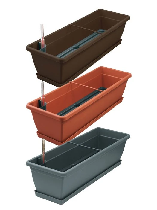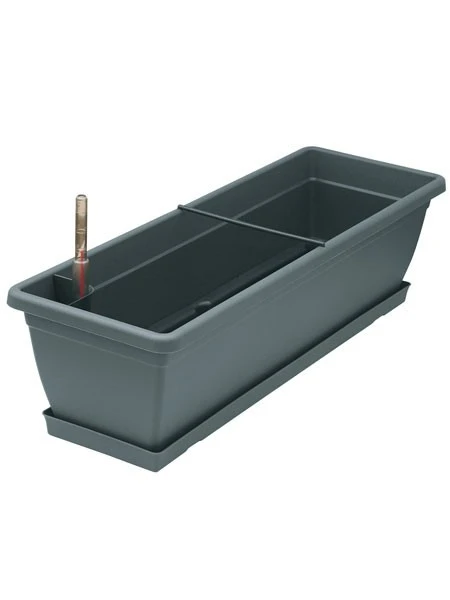 Aqua Toscana, der intelligente Bewässerungsblumenkasten mit Wasserstandsanzeige und Untersetzer.