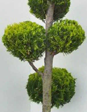 Die Säulenzypresse Ivonne mit ihren Multikugeln, ist schon ein ganz besonderes Formgehölz.Die unregelmäßig um den Stamm herum angeordneten Kugel ziehen sofort alle Blicke auf sich. Die Kugeln leuchten in einer gelb-grünen Farbe. Dieses Formgehölz eignet sich hervorragend zur Einzelstellung oder als Mittelpunkt eines Pflanzbeetes.