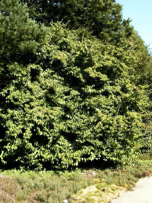| Wuchs: | Oft mehrstämmiger Großstrauch mit aufstrebenden Ästen, bis 6 (-10)m hoch werdend. Beinahe baumartiger Wuchs. An sonnigen Stellen strauchartig wachsend. |