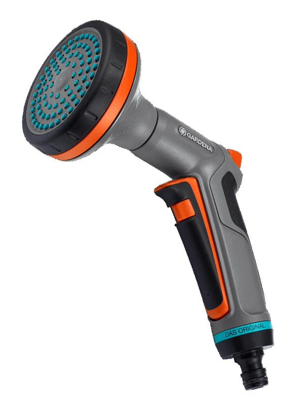 Die Weitenverstellung des Sprühbildes kann an die Größe des Beets angepasst werden. Der ergonomische Griff sowie die Plastikelemente stellen ein Maximum an Bedienkomfort sicher. Der Wasserfluss kann durchgängig angepasst werden. Für eine dauerhafte Bewässerung kann die Auslösetaste festgestellt werden – so vermeiden Sie, dass Ihre Hand ermüdet.