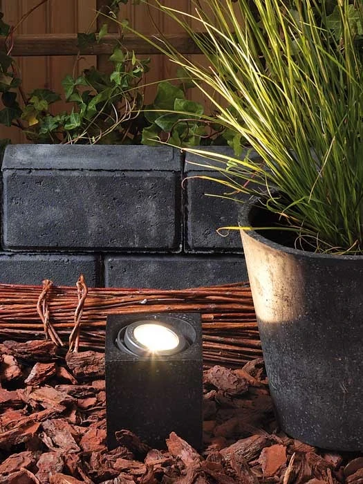 Der Spotstrahler ‚Cylon‘ kann einfach an einem beliebigen Ort im Außenbereich postiert werden und sowohl zur sicheren Beleuchtung als auch zur Anstrahlung besonderer Elemente im Garten dienen.
