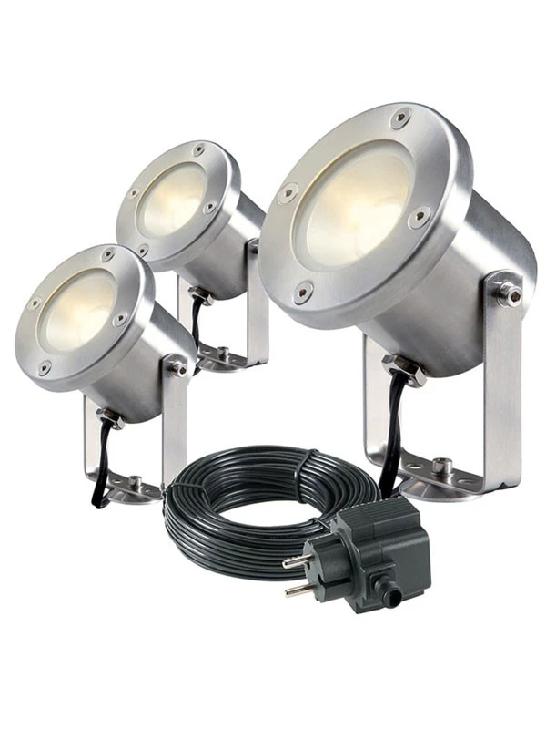 Der Spotstrahler Set Catalpa wird komplett mit Trafo und Kabel geliefert. Durch das einfache Plug & Play Prinzip im Nu einsatzbereit.