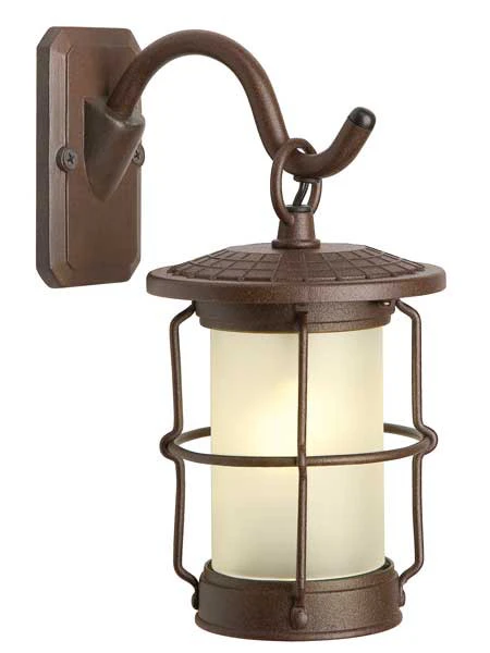 Die Wandleuchte „Callisto“ erstrahlt im klassischen rostbraunem Laternen-Look und integriert sich stilvoll in jede Umgebung.