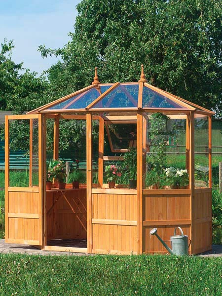 Ob als Gewächshaus oder als dekoratives Element, dieser wunderschöne achteckige Pavillon bringt Nostalgie in Ihren Garten. Der Pavillon ist mit einer Tür, einem Ausstellfenster sowie mit Arbeitsflächen im Innenraum ausgestattet. Die Verglasung der Fenster besteht aus 2 mm-dicken, UV-stabilen Kunststoffplatten, die Ihre Pflanzen vor einer zu starken Sonneneinwirkung schützen.
