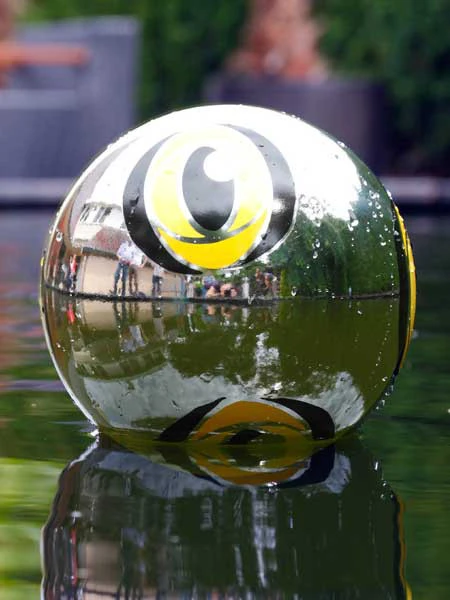 âą durch die Spiegelung des silberfarbigen Treibballs