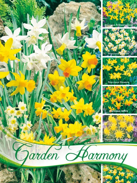 Das Sortiment besteht aus 5 Sorten Narzissen, die aufeinander abgestimmt sind.