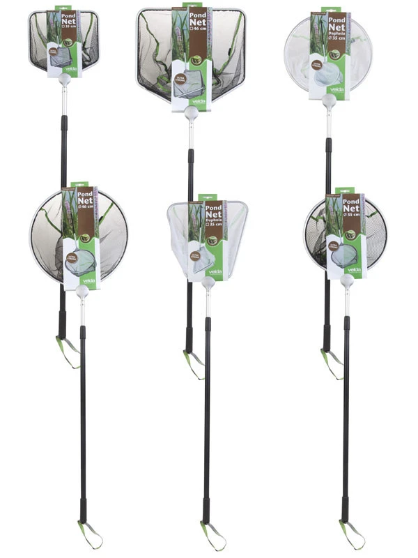 Velda hat ein groĂes Kescher Sortiment mit diversen Fisch- und Teichnetzen mit Teleskopstiel. Das Netz ist unsichtbar in den Rahmen eingearbeitet. Mit der auffĂ€lligen grĂŒnen Biese im Netz ist dieses im Wasser gut sichtbar.