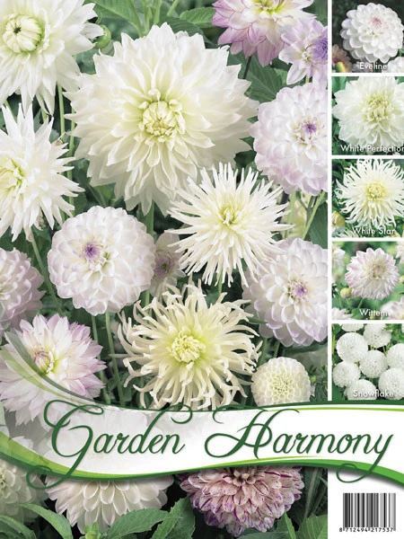 Das Sortiment besteht aus 5 Sorten weiĂer Dahlien, die aufeinander abgestimmt sind.