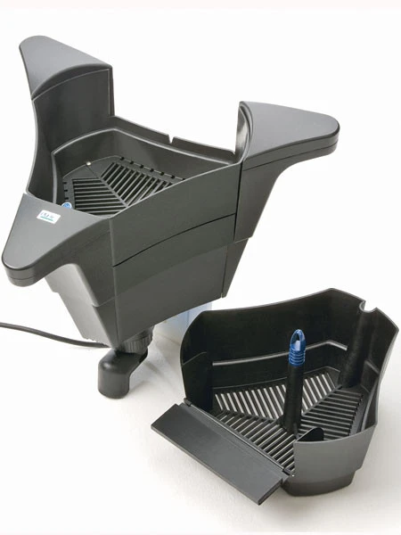Mit der leistungsstarken Pumpe werden Teichoberflächen von bis zu 50m² von Laub und anderem Nährstoffeintrag befreit. Der Skimmerkorb lässt sich schnell und unkompliziert entleeren.