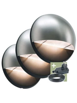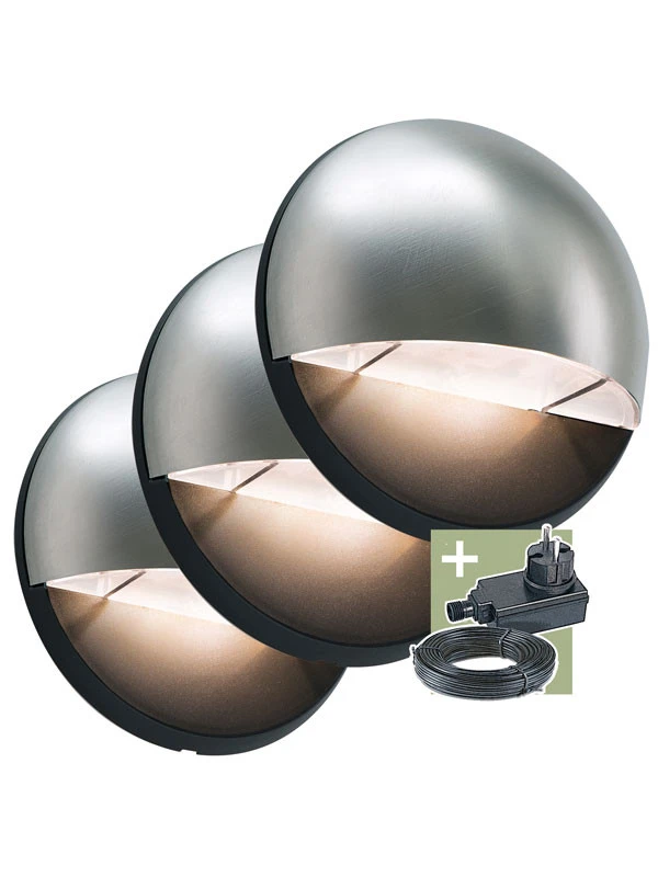 Beleuchten Sie Ihre Wand oder Ihren Gartenweg mit dieser Ludeco AuĂenleuchte Aron Starter-Set. Diese drei grauen Wandleuchten haben jeweils drei integrierten LEDs und sind durch die sichere Spannungsebene von 12 Volt menschen- und tierfreundlich. Die dezente und minimalistische Leuchte leistet 90 Lumen. Das Starter-Set besteht neben den Aron-Lampen aus einem Trafo und einem 8 Meter langen Kabel.