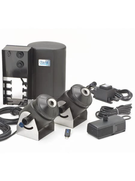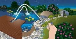 | Fernbedienung Die im Lieferumfang enthaltene Fernbedienung hat eine Reichweite von bis zu 80 m. | Â | Externe Steuerung Die Steuerungseinheit ist leicht anzuschlieĂen und beinhaltet einen Transformator sowie einen ErdspieĂ. | Hochwertige Materialien und ansprechendes Design – ganz Water Entertainment von OASE. |